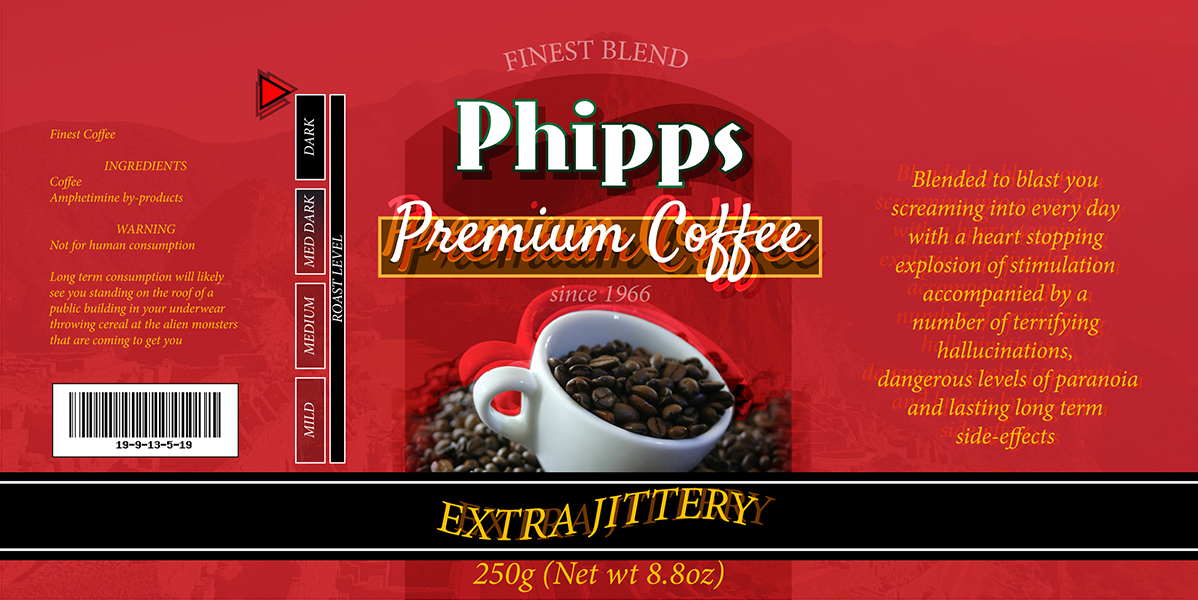 Among the other fun jobs, on Golf was to lend a hand designing all manner of labels for the various bottles and food items that get smashed in the game. We began by making very simplistic labels but realised that the only way to get the look right was to effectively do the work of real packaging designers. I spent a lot of time designing our own fake food brands based on our names and those of our family members. This was a cool challenge in itself and so was making the copy on the packaging funny. Because each food item could fall right up to the camera full screen, the text on the side of the boxes had to be readable – so there are countless jokes on the side of every box, can and bottle in the game.