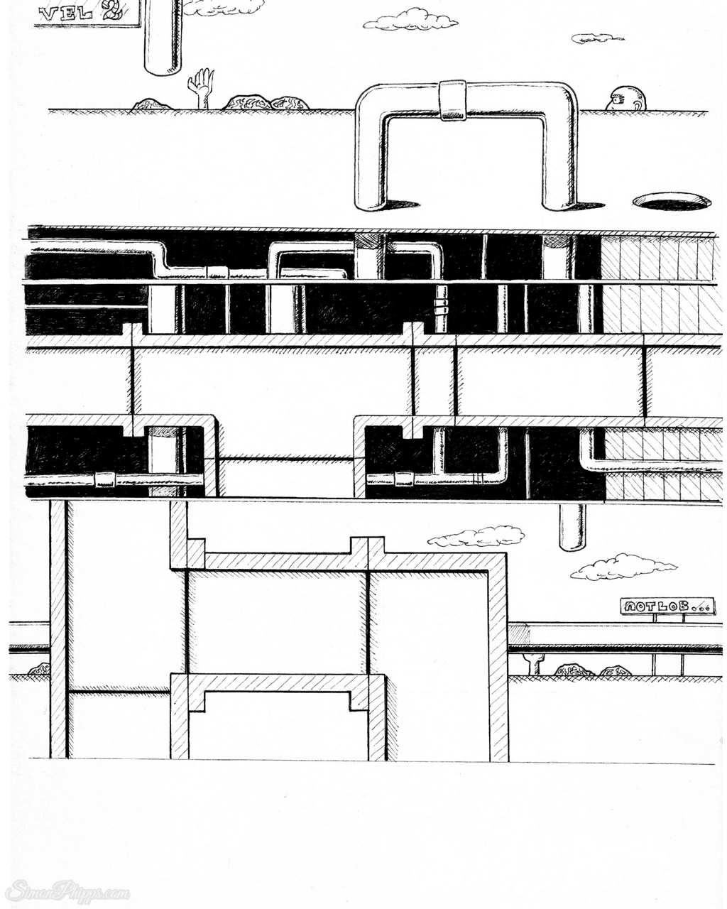 Here are scans of the original concept drawings I made while working out the graphics. The game not only required me to replicate Gilliam’s animated characters but create versions of live action characters and characters only mentioned in song in that style. Also, here are the sketches I made while figuring out how to make a scrolling landscapes for the game.